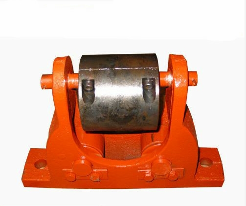 一种由托轮轴、托轮、密封套构成的托轮部件和支座、垫片、锁定套、开口销、销轴、挡圈、护罩等所组成的电除尘器新型尘中轴承。托轮呈圆柱状,与托轮轴间隙配合,设有密封套相吻合的沟槽;托轮轴中间有一段狭径,两端设有挡圈槽和开口销孔。支座底板呈长方形,两端有固定螺栓孔,中间有排泄粉尘用的矩形孔,两侧墙板对称,墙板上有斜槽、锁定套孔、及销轴安装孔等,通过挡圈、锁定套、销轴、垫片、开口销能快速安装托轮部件和护罩。新型尘中轴承所采用的结构形式可适当延长尘中轴承的使用寿命,能轻松快捷地装拆所有零部件,使安装、维修、更换均**方便。